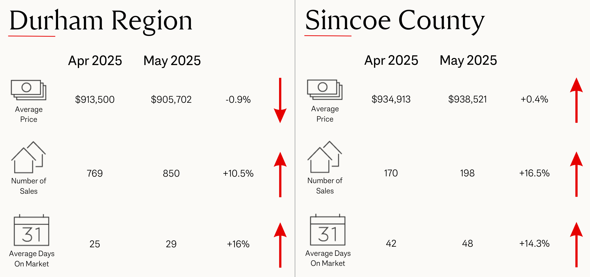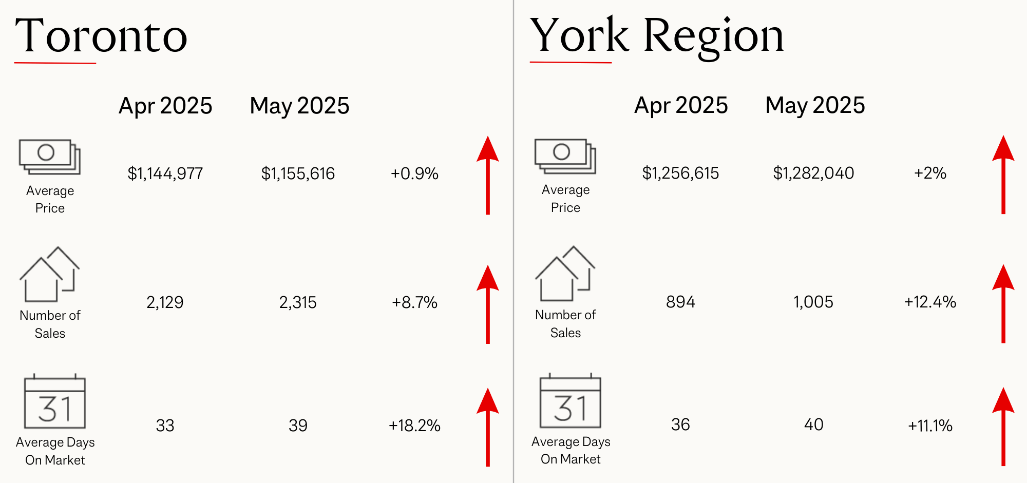 To see how prices have been affected in your area, please click the link below to get access to TRREB's May Market Statistics for all areas in the GTA. The stats are broken down by average sales price, number of homes sold, number of new listings, and average days on market for each property type; detached, semi-detached, townhouses, and condos.